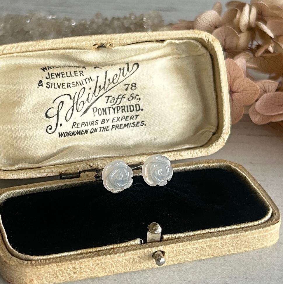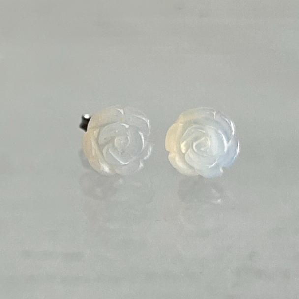 グレーオニキス 薔薇 ローズ チタン スタッドピアス a