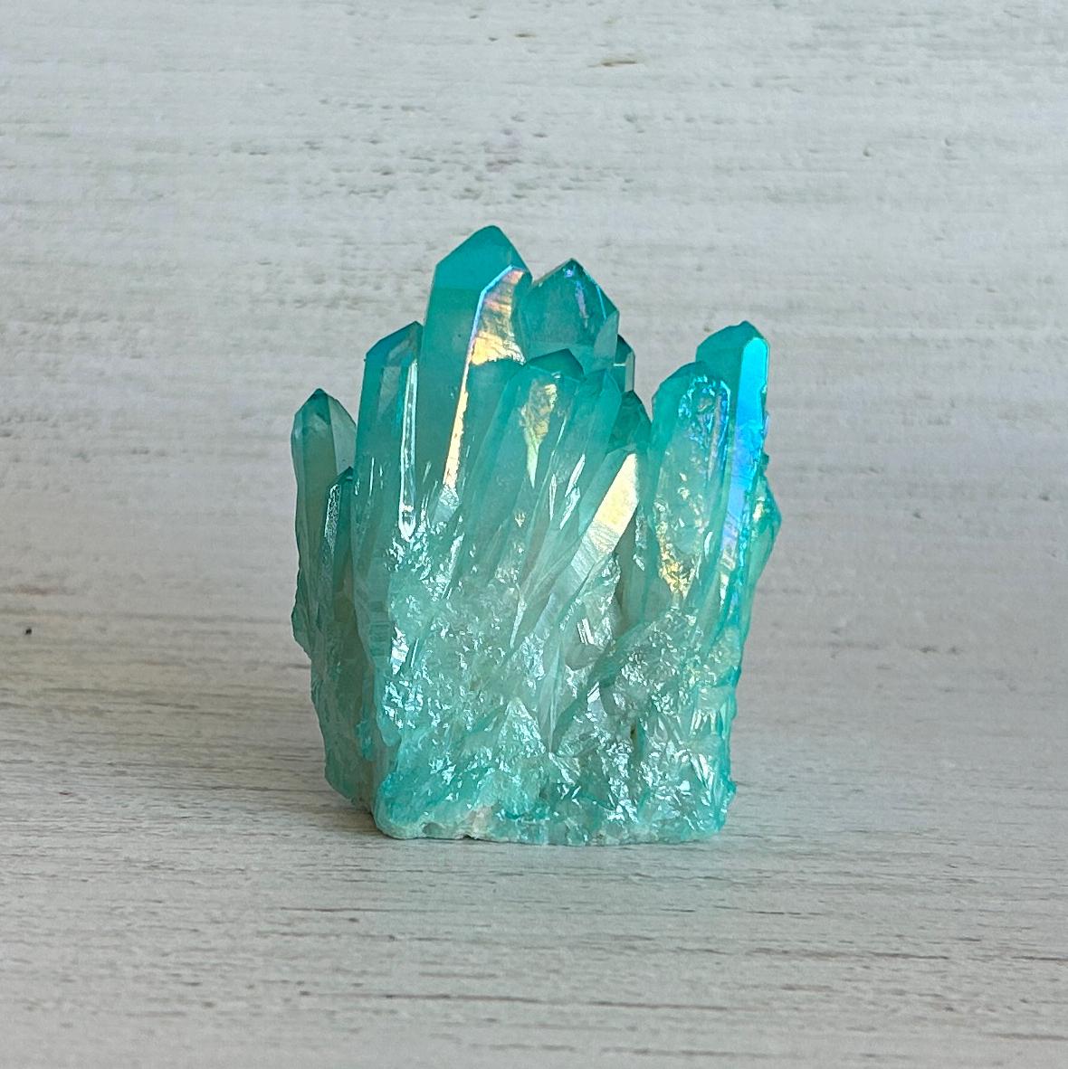 このアクアオーラクラスターは、重さ約135g、高さ約6cmと手のひらに収まるサイズ感ながら、存在感はたっぷり。